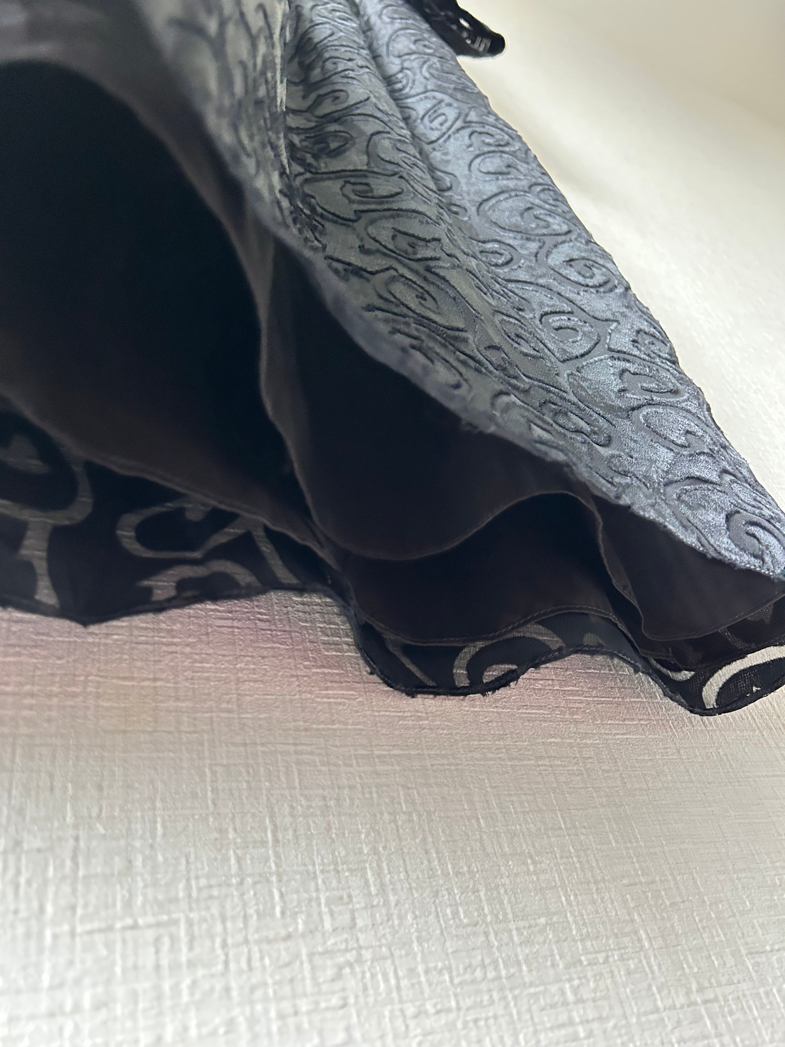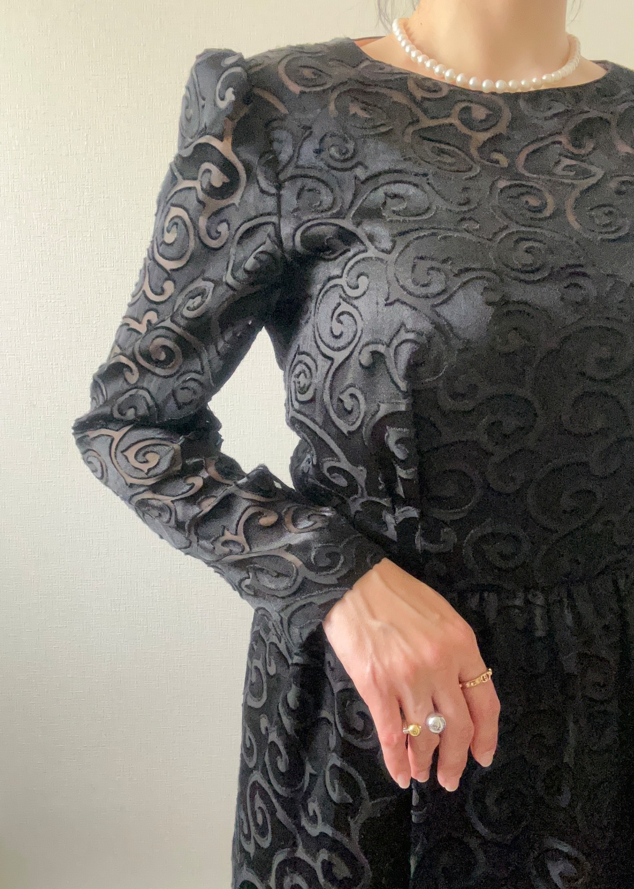 腕は透け感があり、胸元と背中、スカート部分はには裏地が付いています。