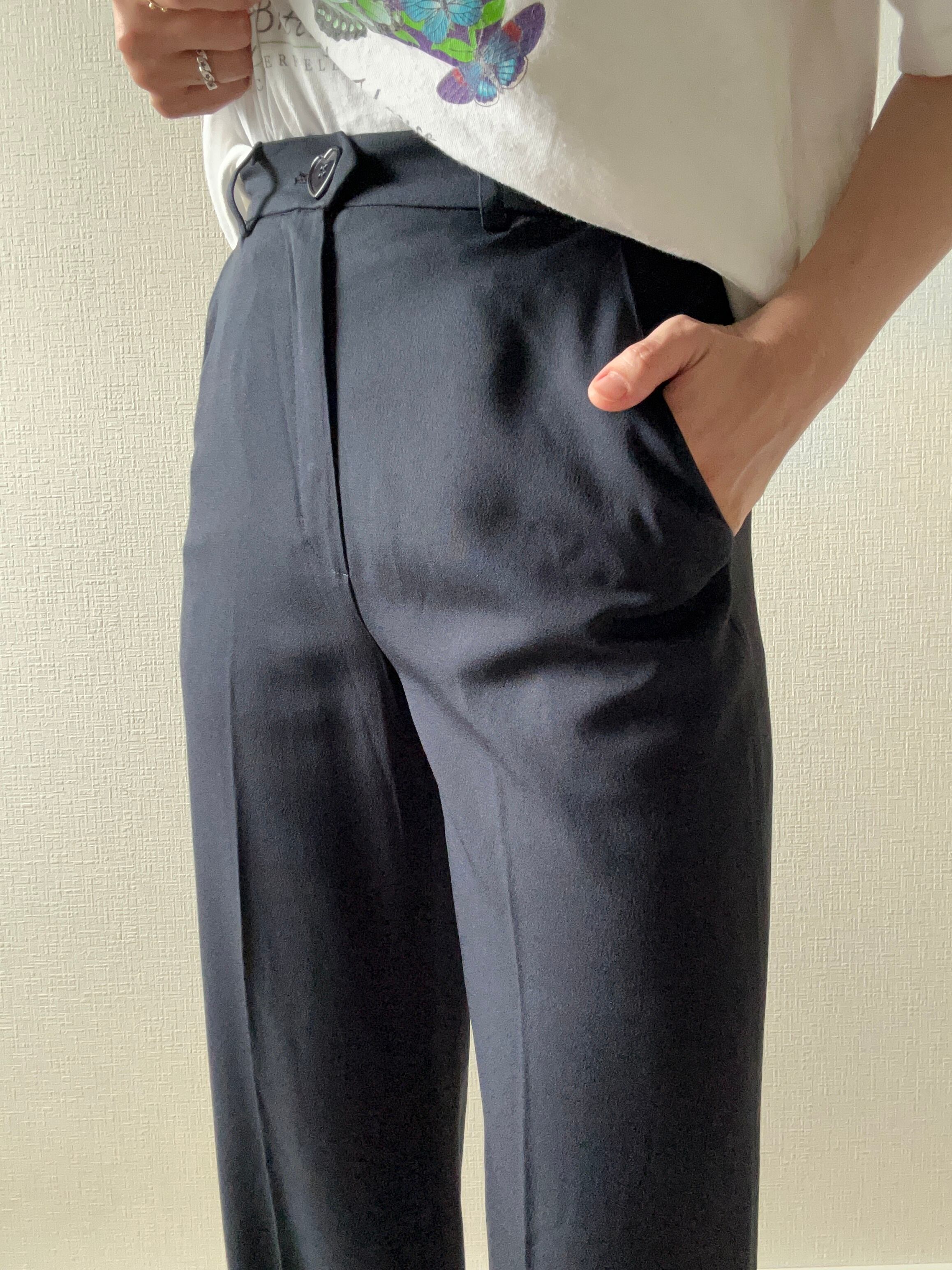 ネイビーのストレートパンツは、カジュアルにもフォーマルにも◎