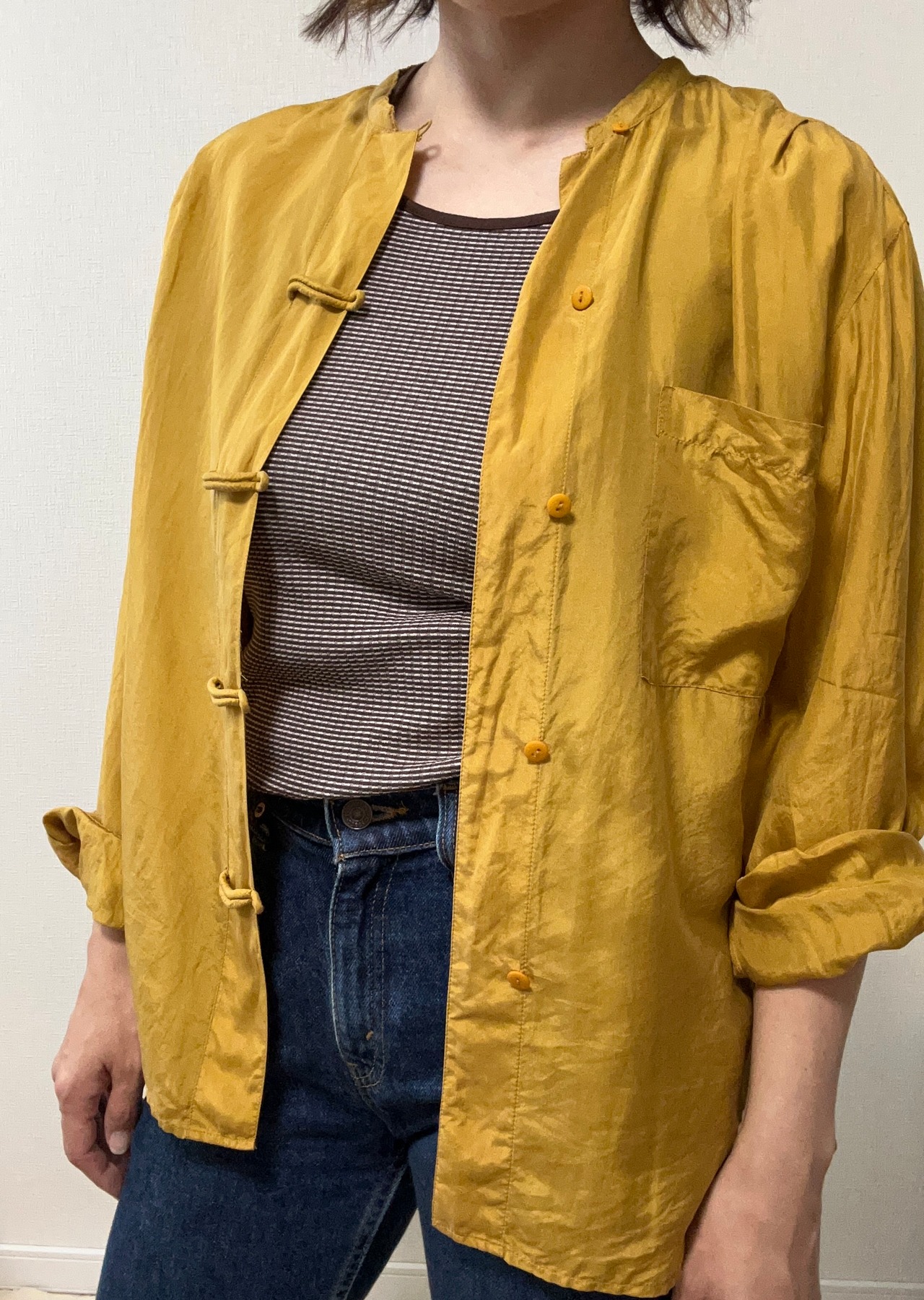 ボタンのデザインが特徴的で、スタンドカラーなので首周りがスッキリ