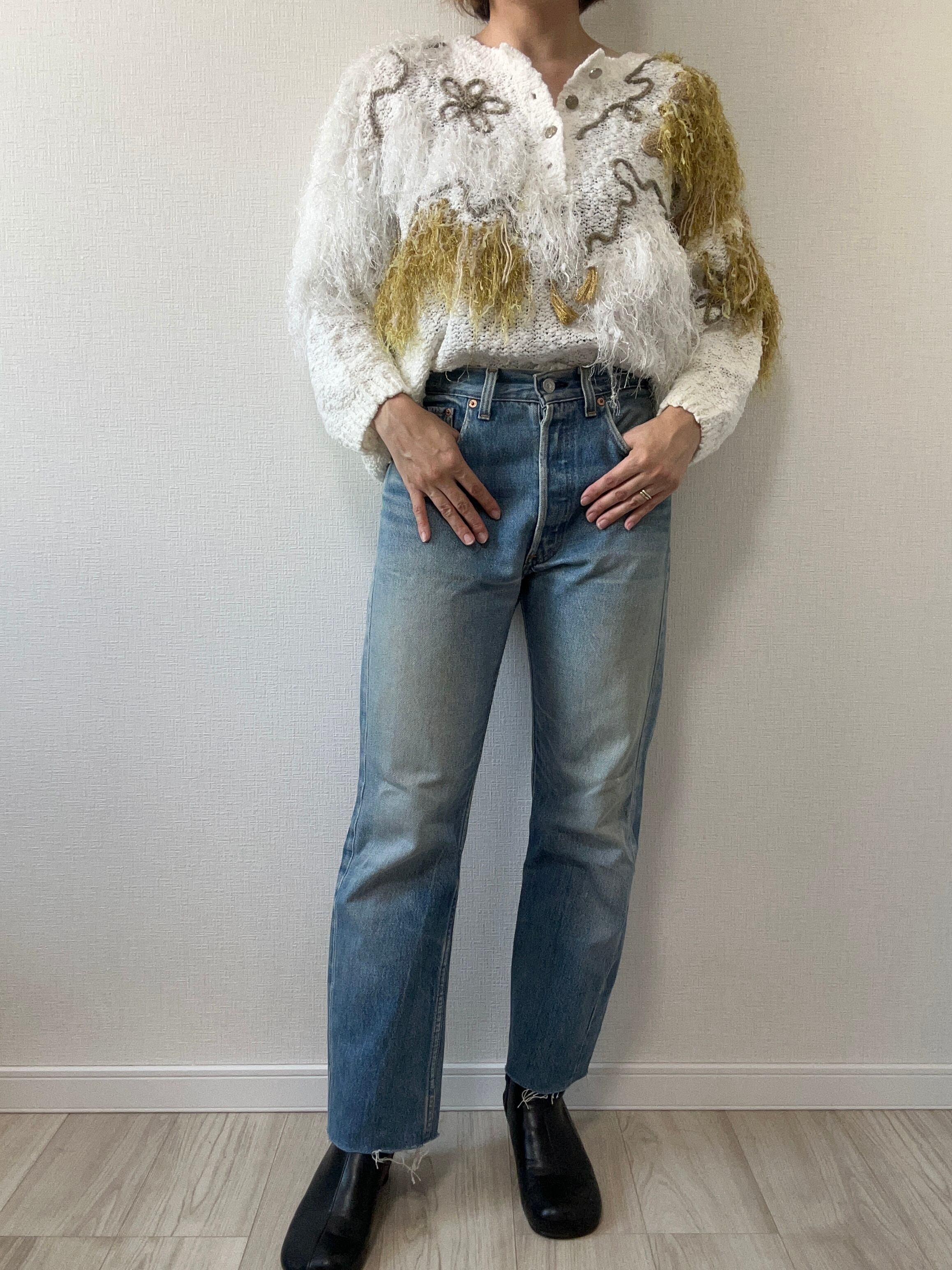 501のストレートシルエットに、裾はカットオフでスッキリとしたデザイン。