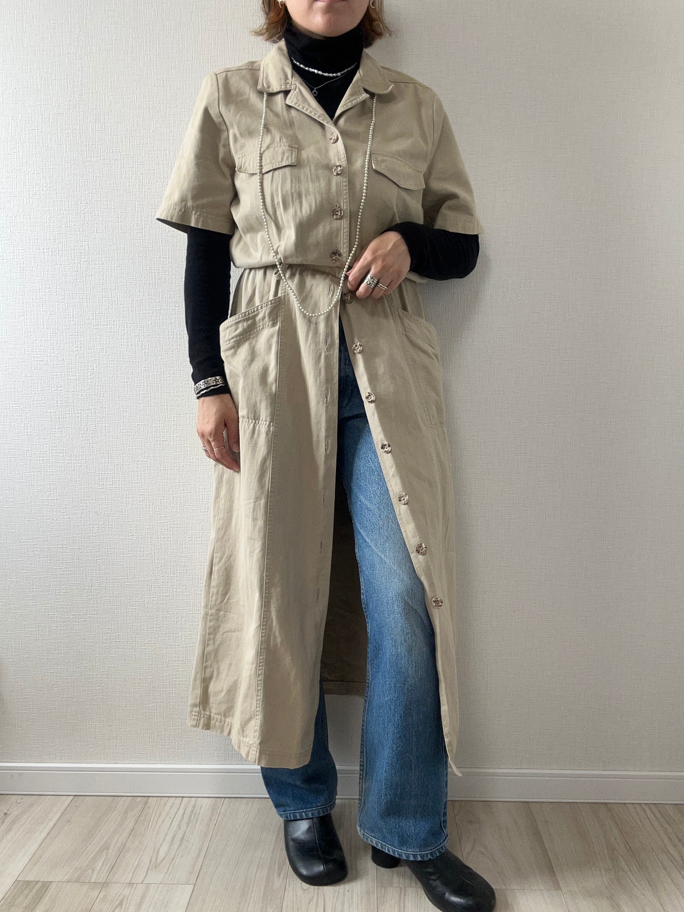 ボタンダウンなので、一枚でワンピースとして着たり、ジレ感覚で羽織ったりと違った雰囲気を味わえます。