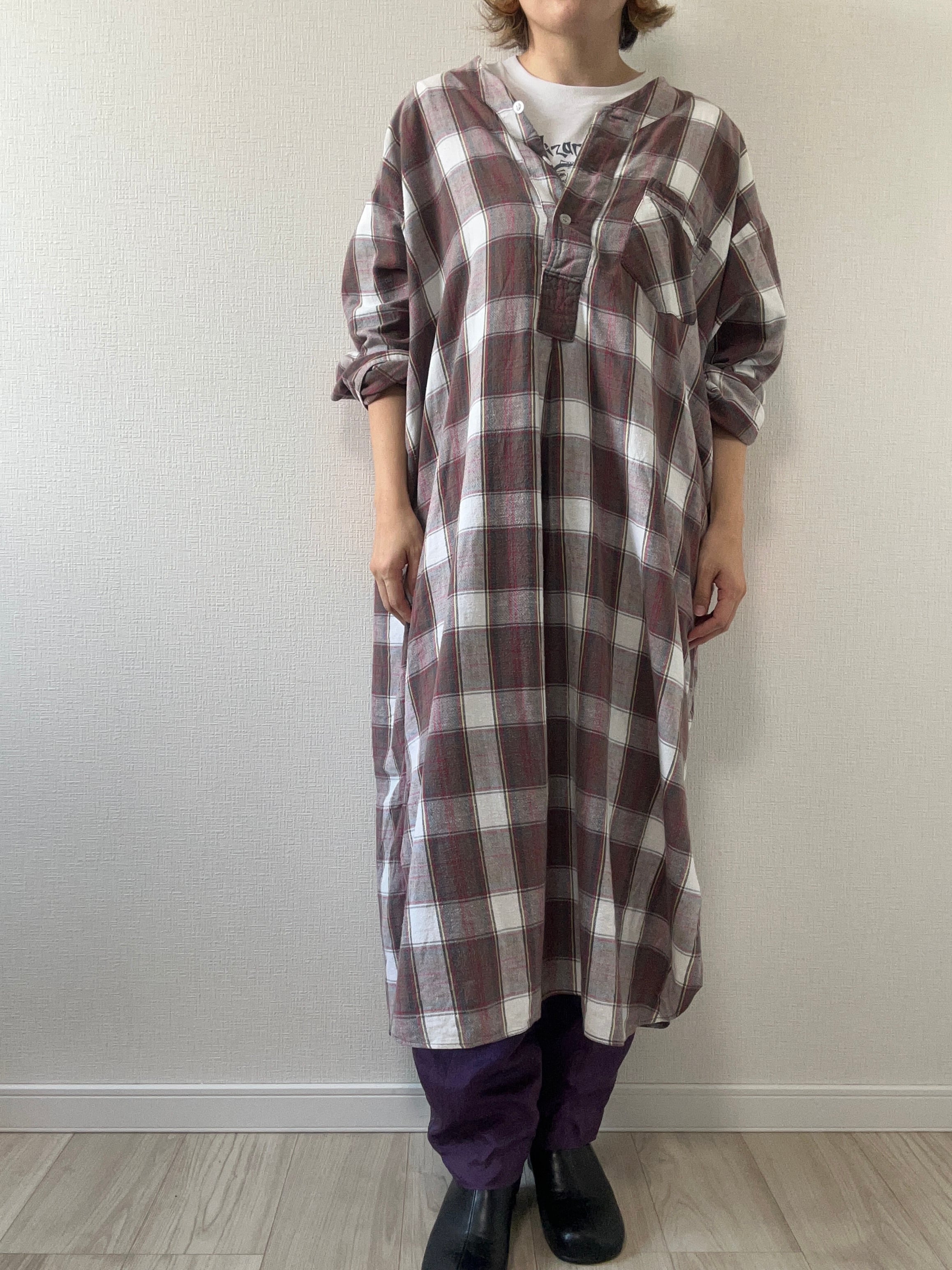 オールドのロングシャツパジャマワンピースは、柔らかい生地とたっぷりとしたロング丈、裾には深いスリットで着やすいデザインです。