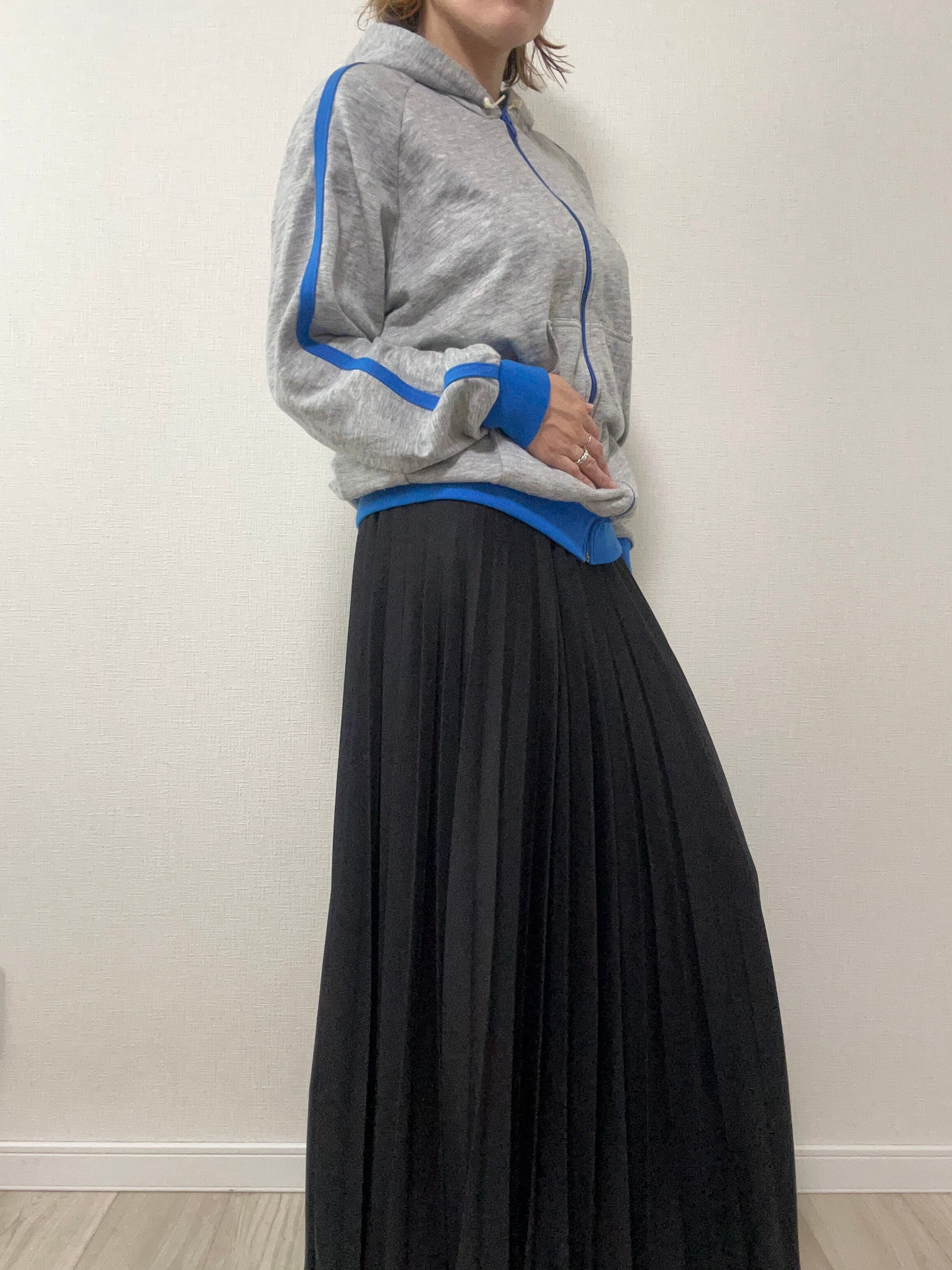霜降りグレーにブルーのラインがポイント。フードもしっかりとしています。
