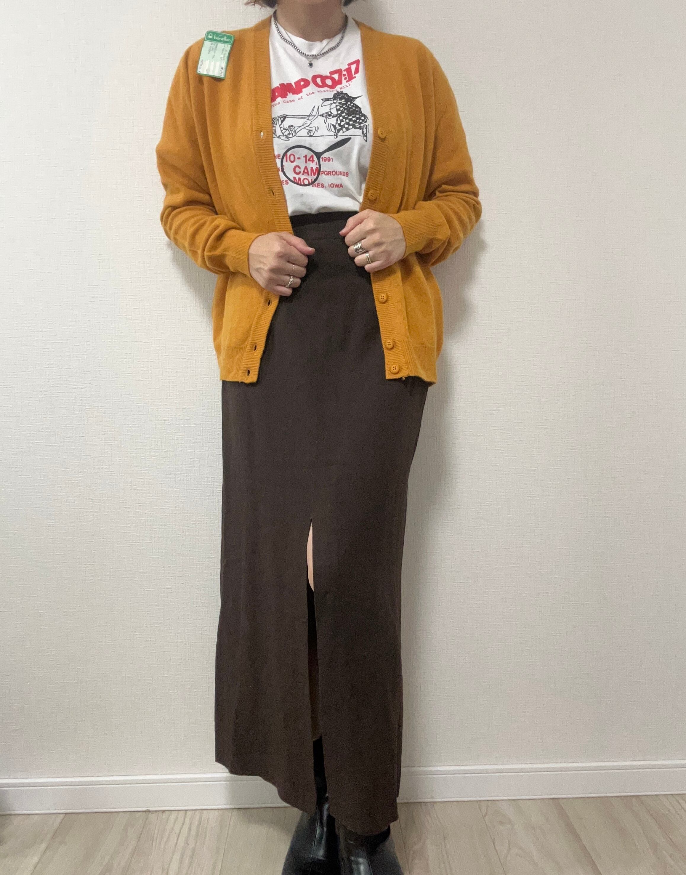 ダークブラウンカラーで、落ち着いた大人なスカートです。