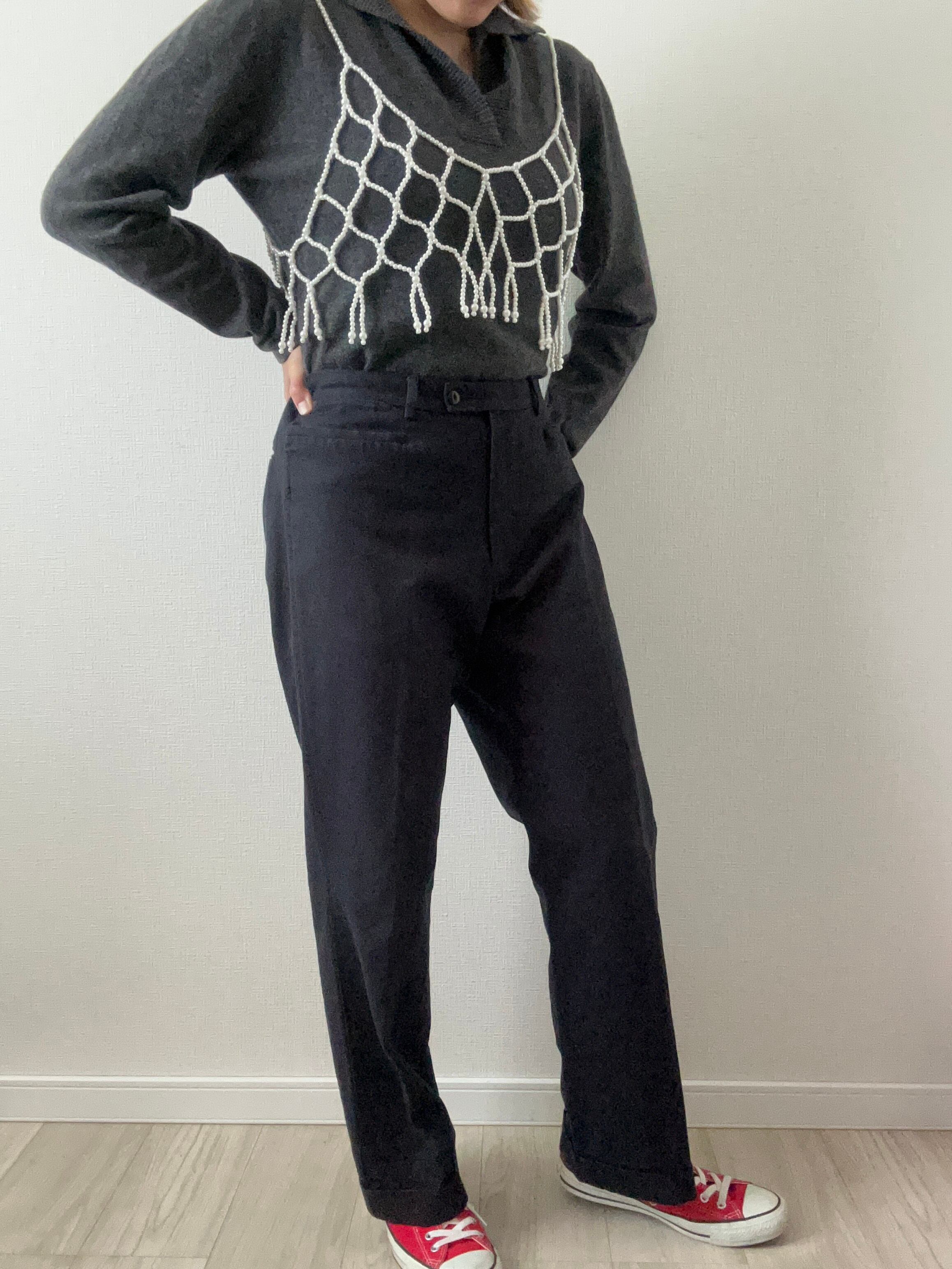 裾はロールアップされたデザイン。裾にスレによるダメージがあります。