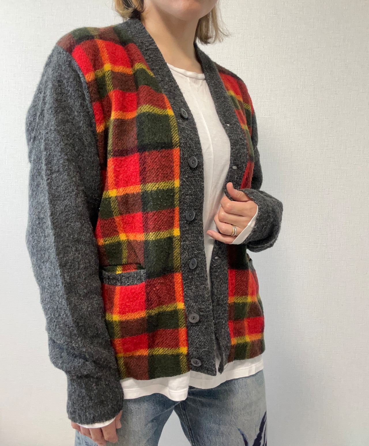 前見頃がチェック柄で、腕と背中はグレー単色。この配色がたまりません。