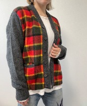 チェック柄部分はマフラーのような生地で、グレー部分は細めの糸で編まれています。