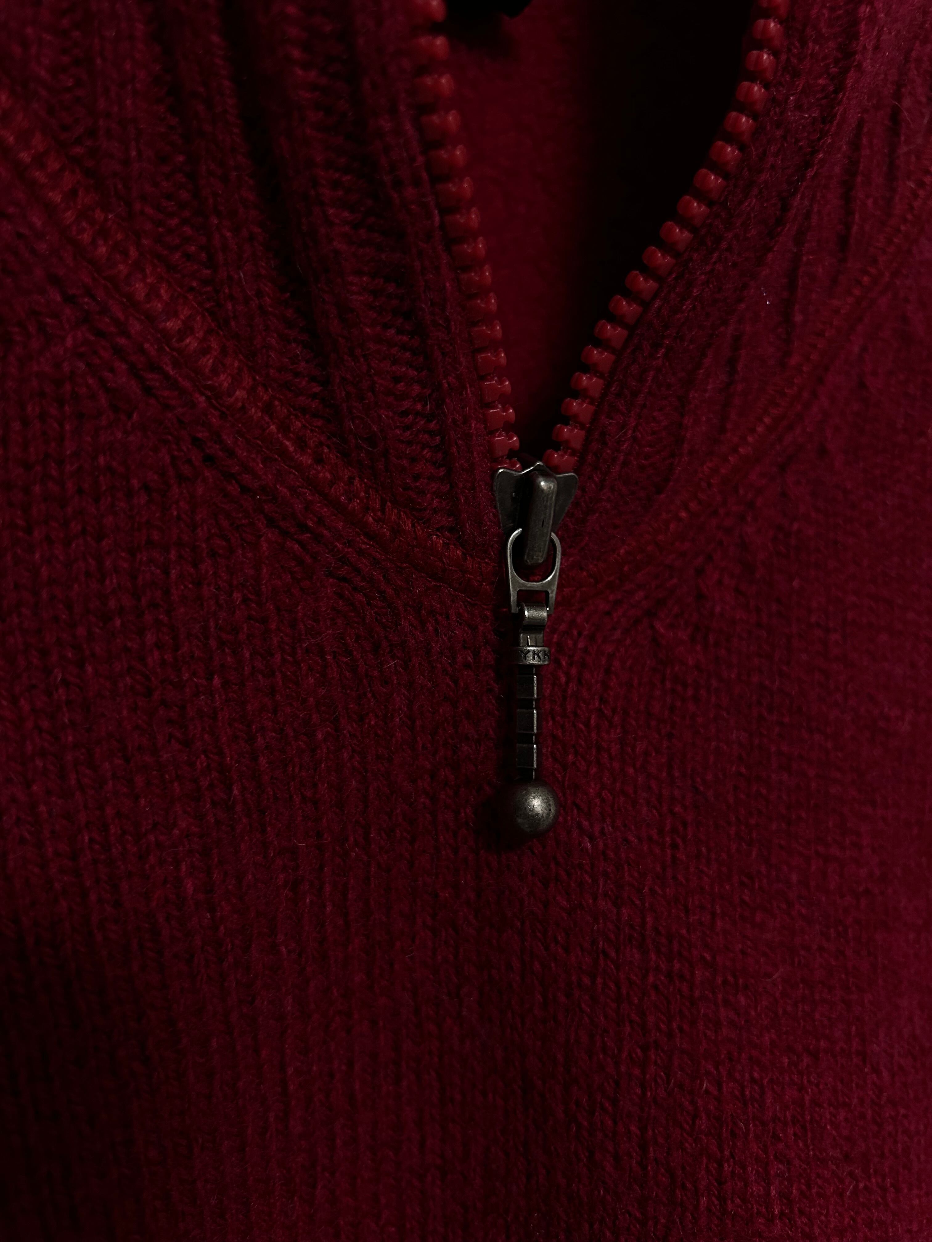 首元は今シーズン人気のハーフジップで、内側はフリース素材で温かくウール特有のチクチク感がありません。