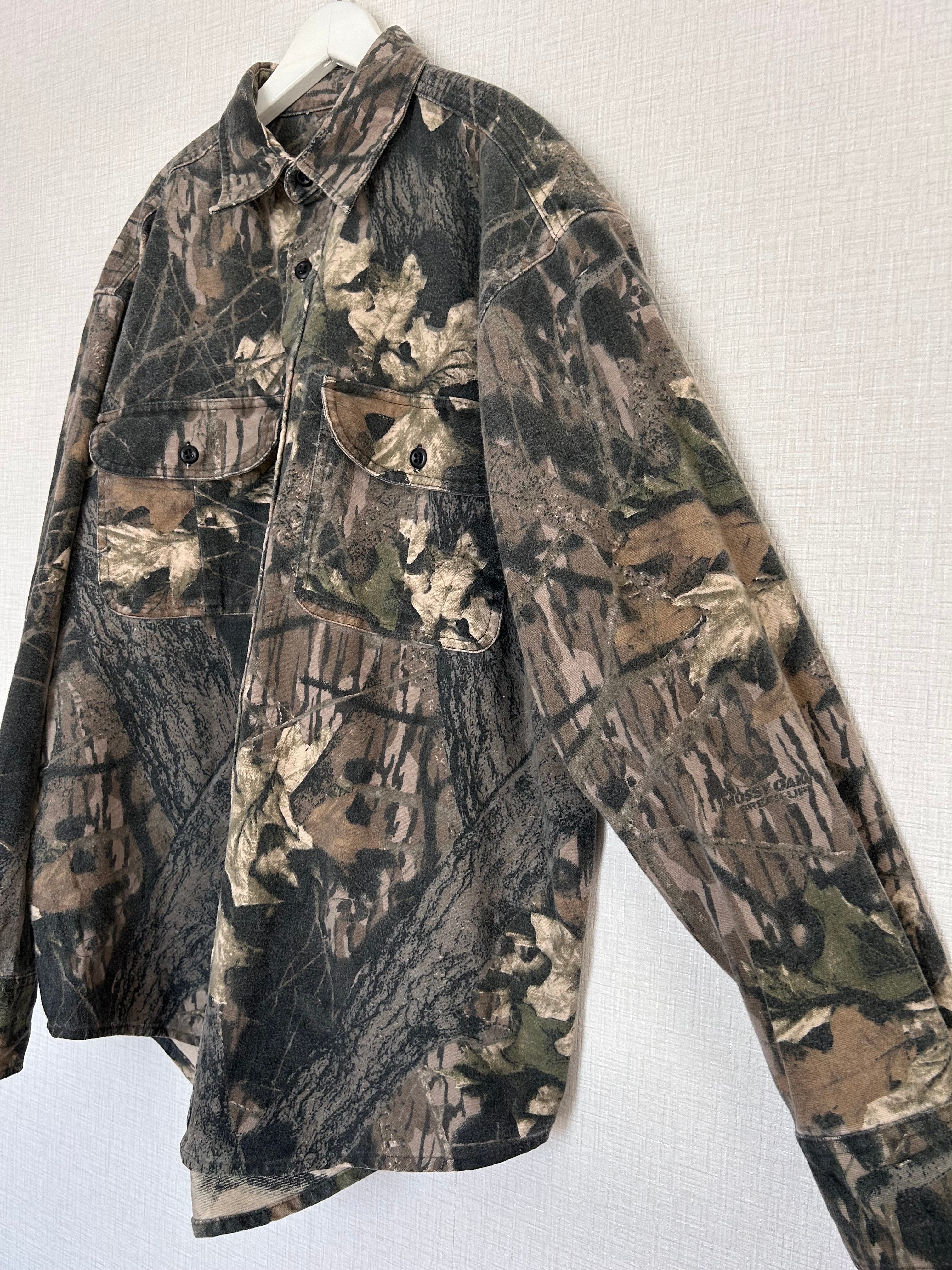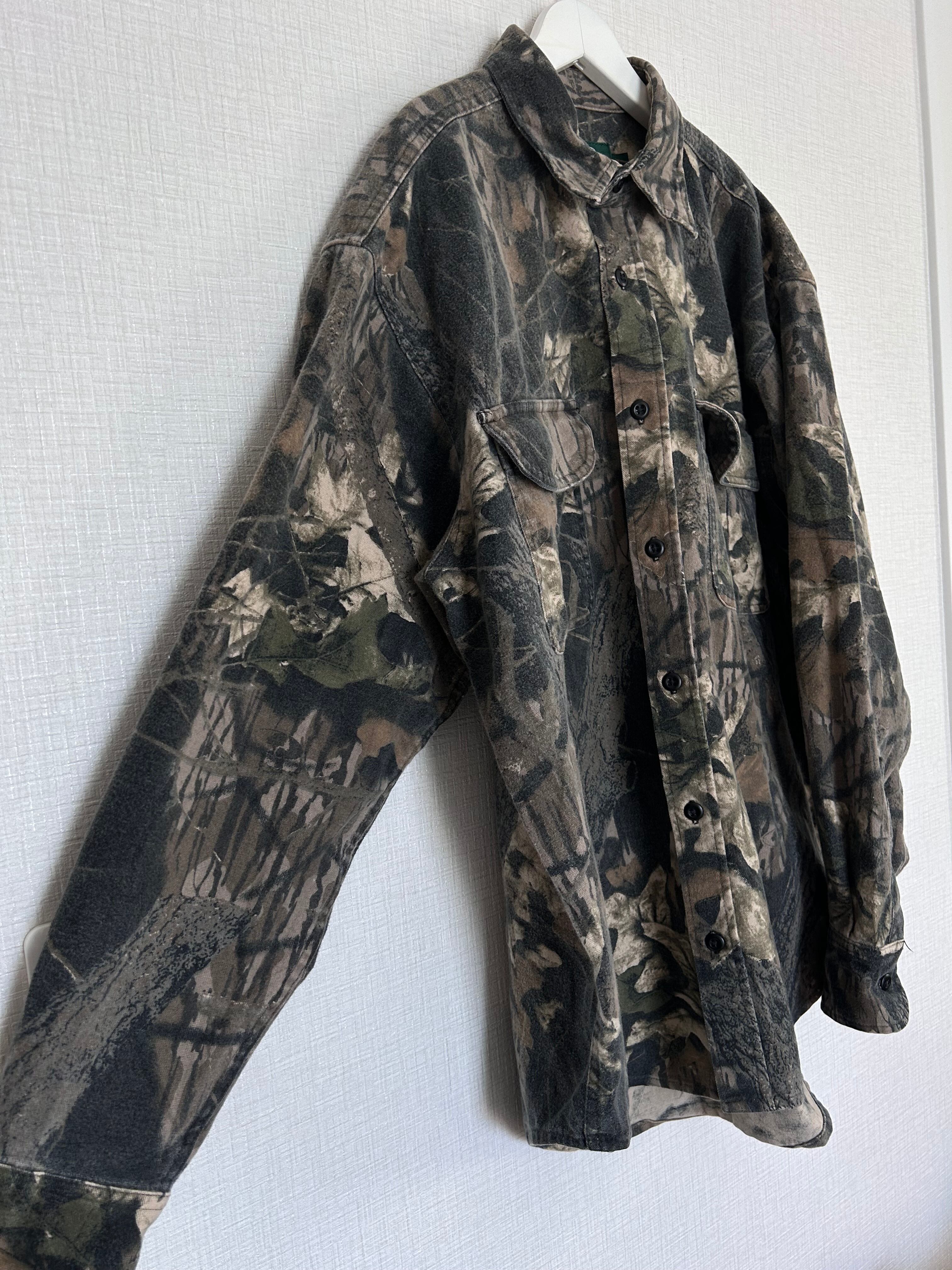 全体にリアルツリーカモをあしらい、生地は厚手のコットン地を起毛させた、柔らかく肌触りの良いシャツです。